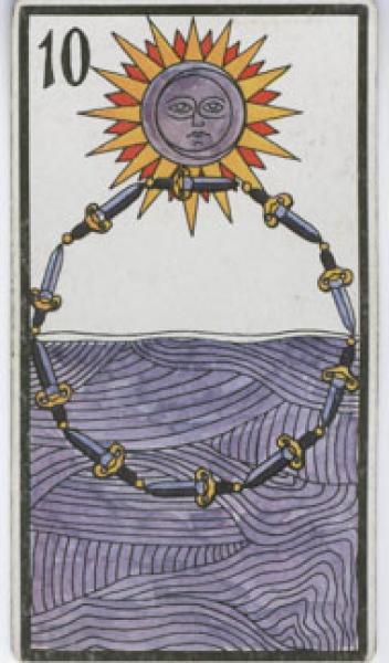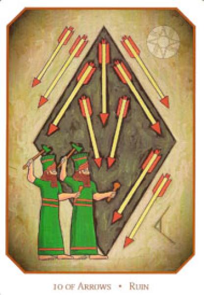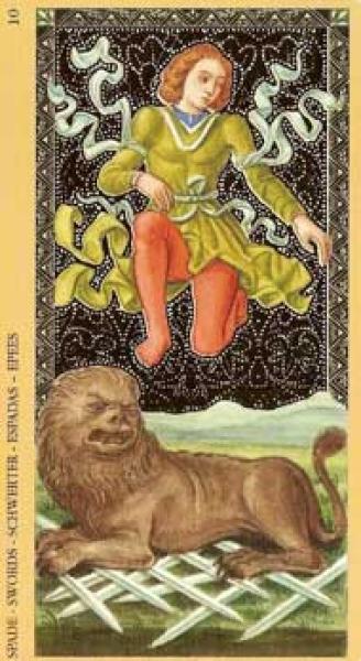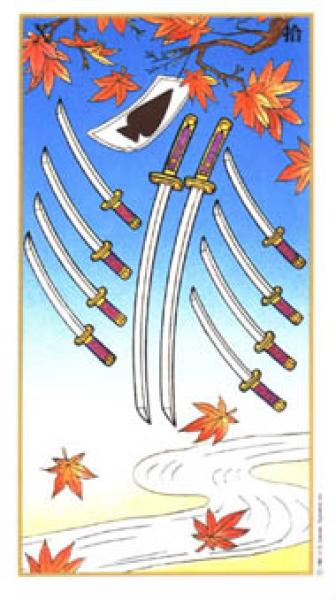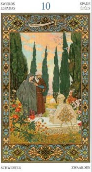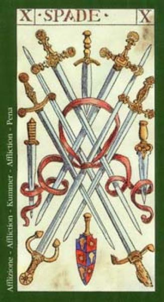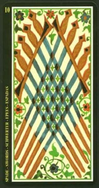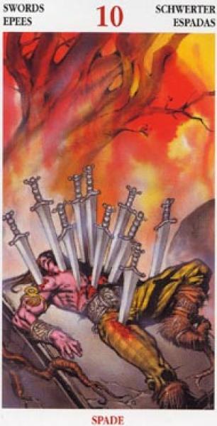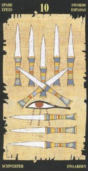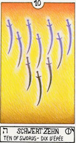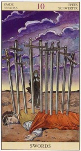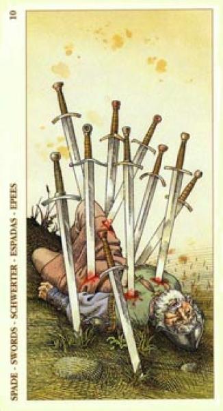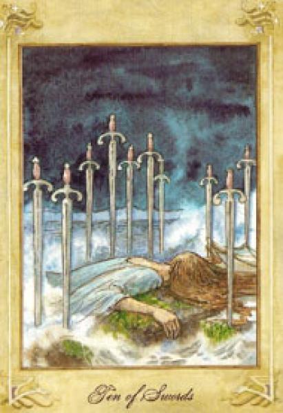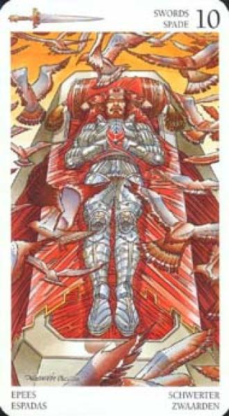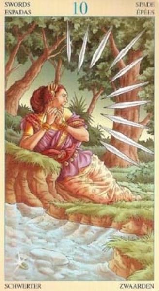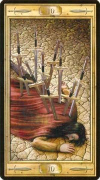 The images of the same card in different Tarot decks can differ significantly. Take a look at how the gallery appears Ten of Swords in the most popular and intriguing decks. This will help you grasp the card's meaning on a deeper level.