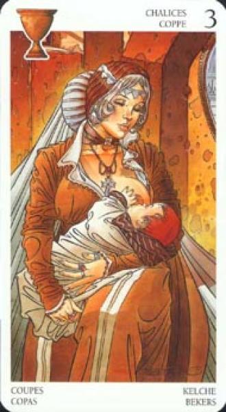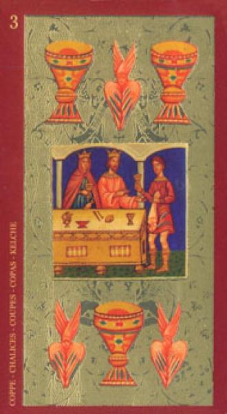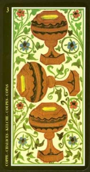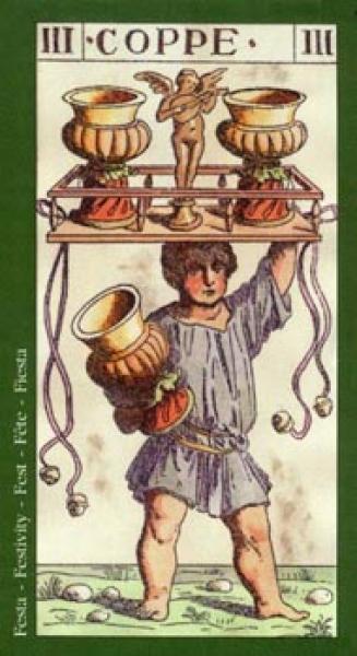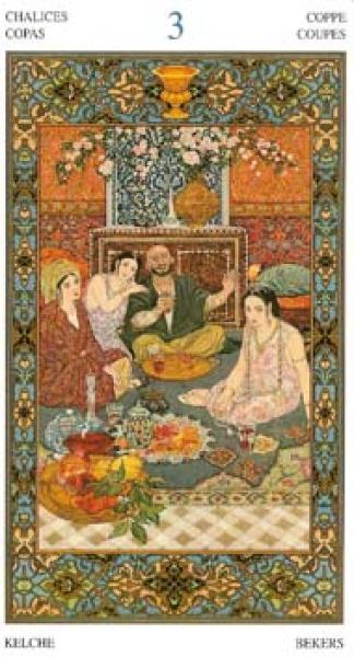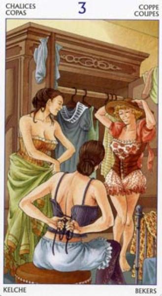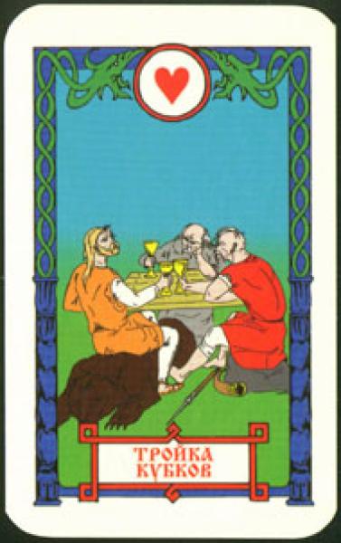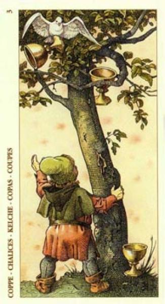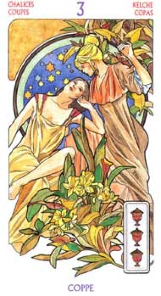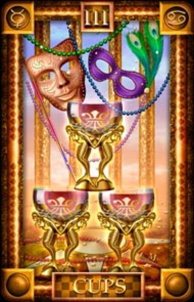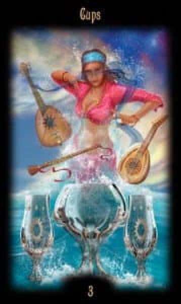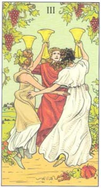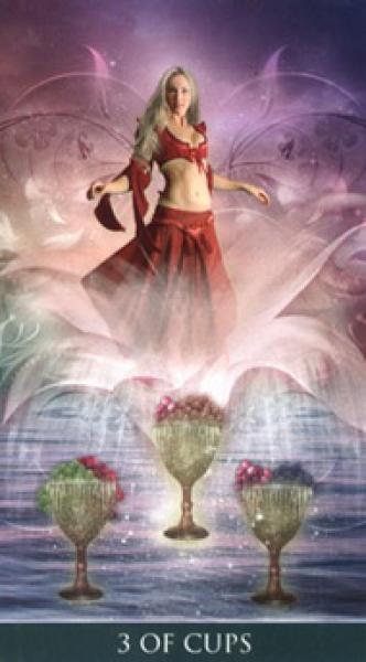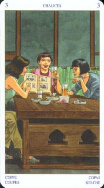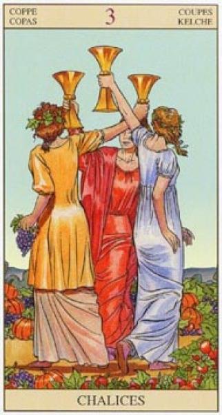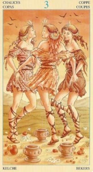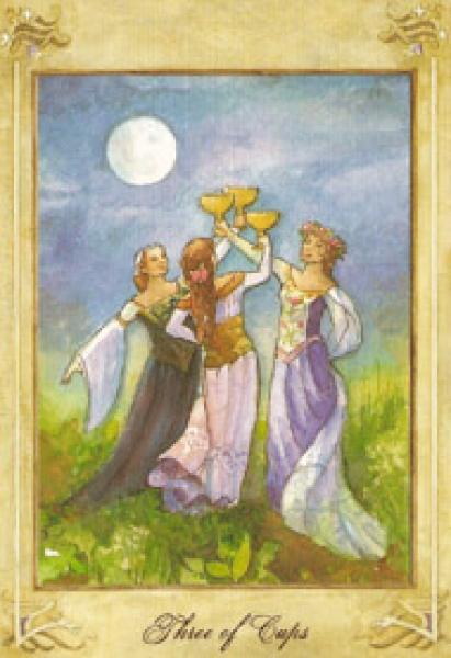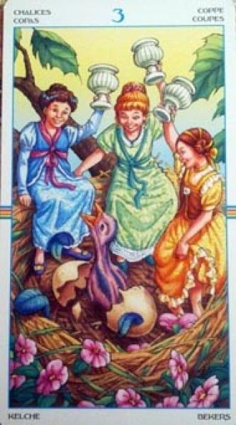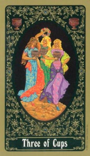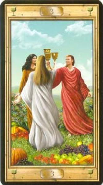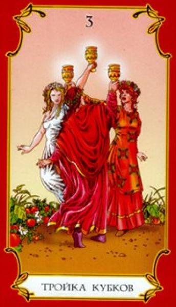 The images of the same card in different Tarot decks can differ significantly. Take a look at how the gallery appears Three of Cups in the most popular and intriguing decks. This will help you grasp the card's meaning on a deeper level.